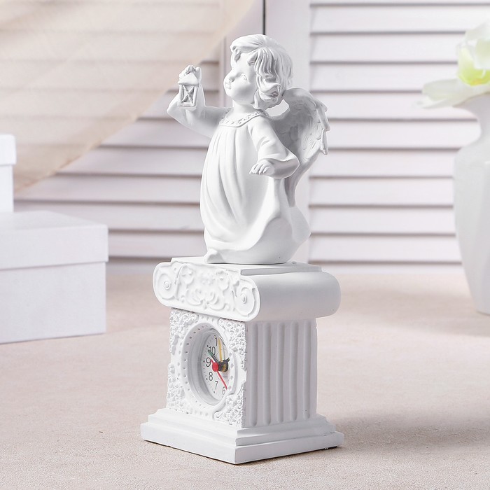 Часы настольные "Ангел с фонариком", цвет белый, h=25 см