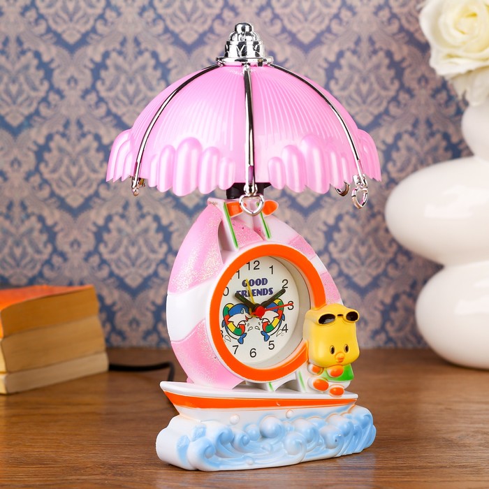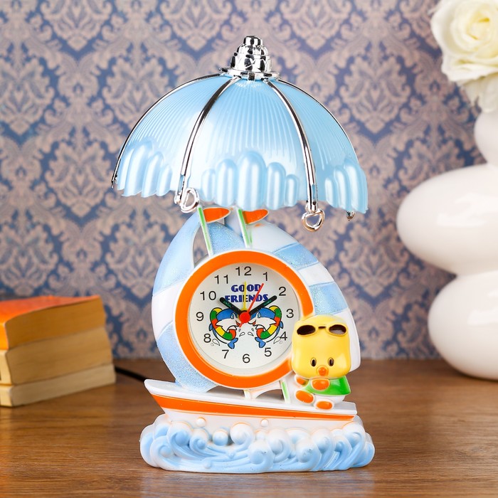 Часы-светильник с будильником "Утенок на лодочке на волнах"