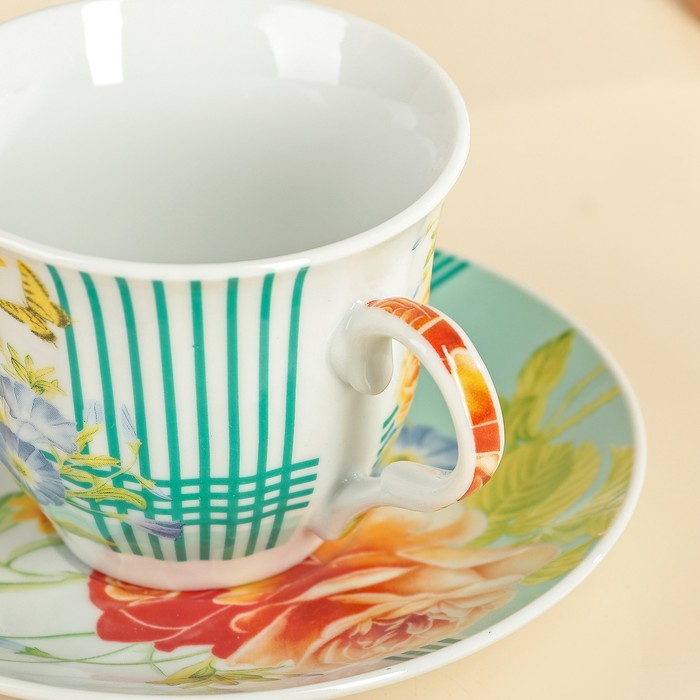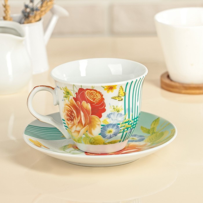 Чайная пара 210 мл "Мари" отличается не только эффектным дизайном, но и бытовой практичностью. Керамические изделия легко моются и не требуют чрезмерно деликатного ухода.