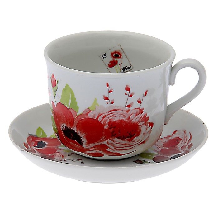 Чайная пара 450 мл "Красные цветы", рисунок МИКС