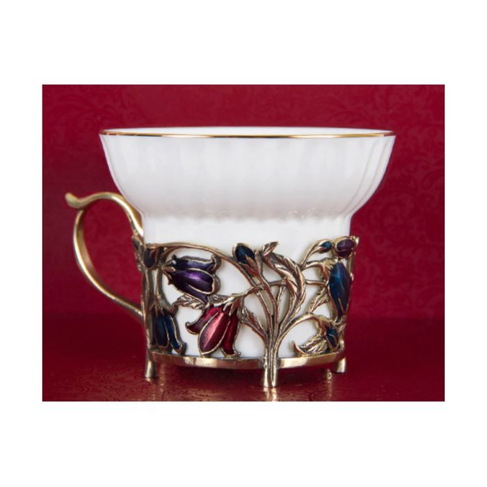 Чайная пара фарфоровая с цветками из латуни «Колокольчики и Незабудки» в картонном футляре