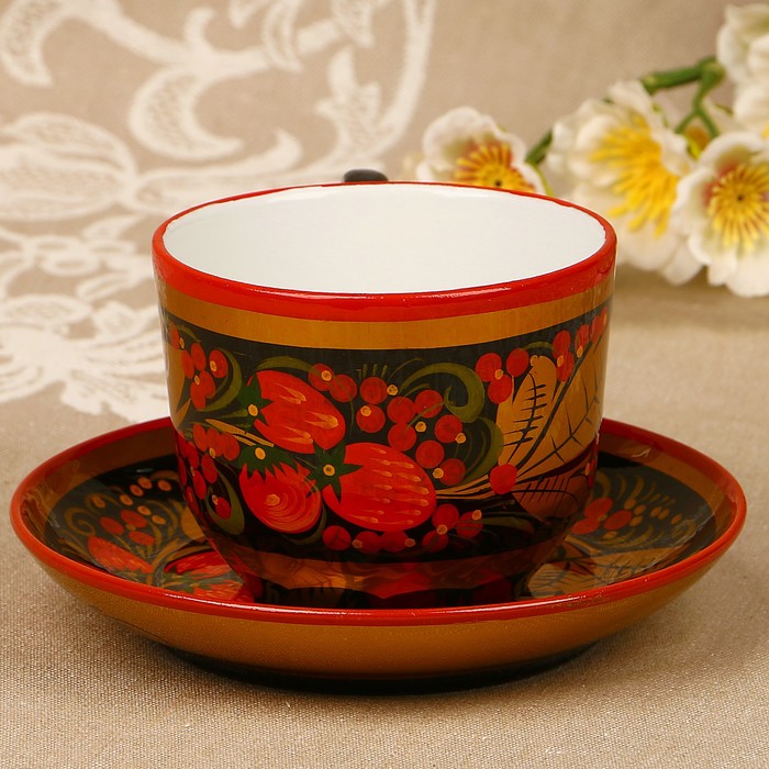 Чайная пара «Земляничка», 9х5 см, 200 мл, хохлома, фарфор