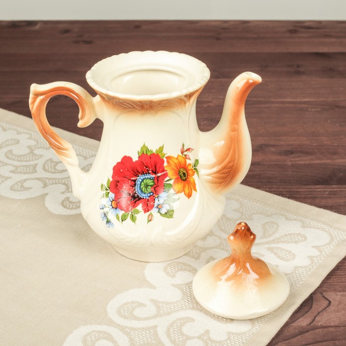 Чайник для заварки 0,6 л "Элит" коричневый, красный мак деколь