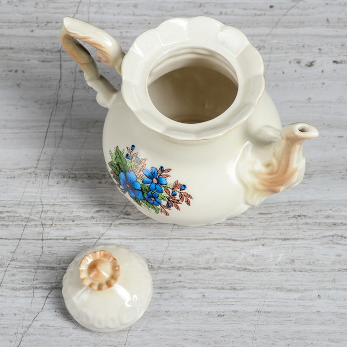 Чайник для заварки 0,6 л "Ромашка" коричневый, незабудка деколь
