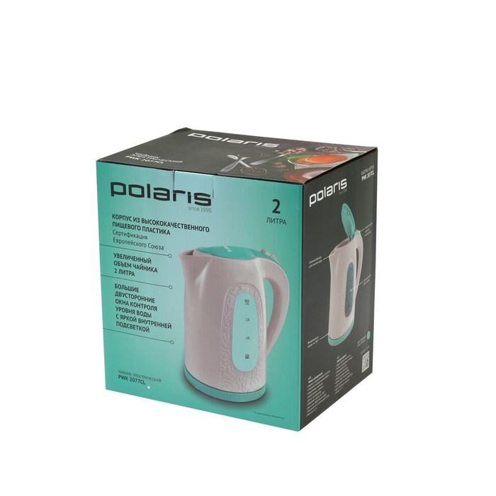 Чайник электрический Polaris PWK 2077СL, 2200 Вт, 2 л, бирюзовый