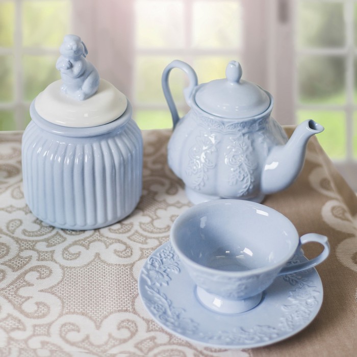 Чайник заварочный 570 мл "Кружевная лоза", цвет голубой