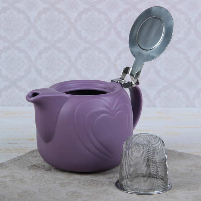 Чайник заварочный 700 мл "Сердца", с ситом, цвет сиреневый