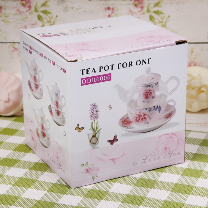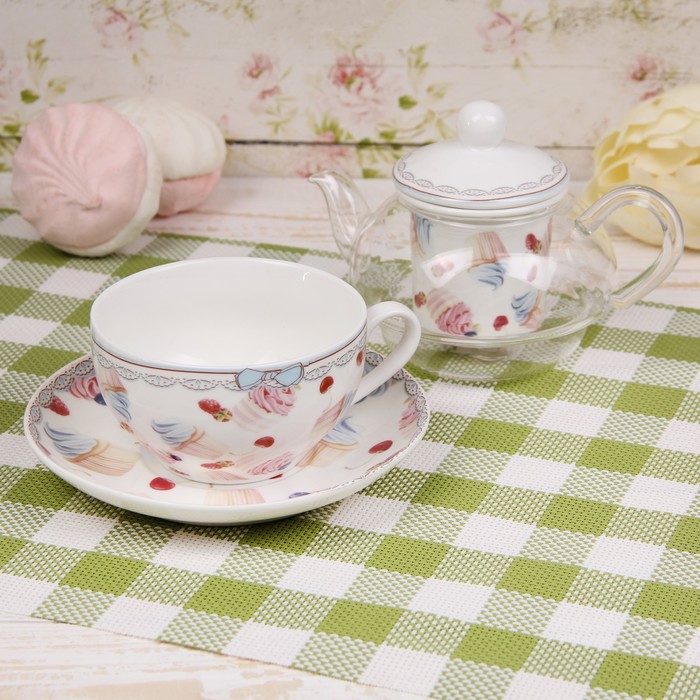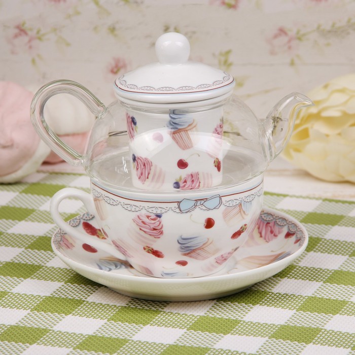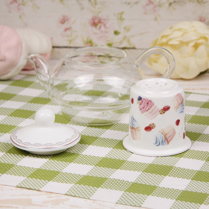Чайник заварочный "Пирожное", с керамическим ситом, чашкой и блюдцем