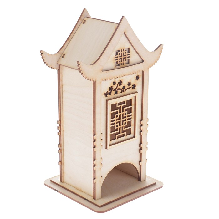 Чайный домик из фанеры "В японском стиле" с цветами 13х25х13 см (ЧД 00-26)
