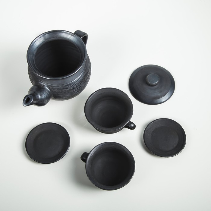 Чайный набор "Чёрная керамика", чайник 0,5 л, 2 чайные чашки