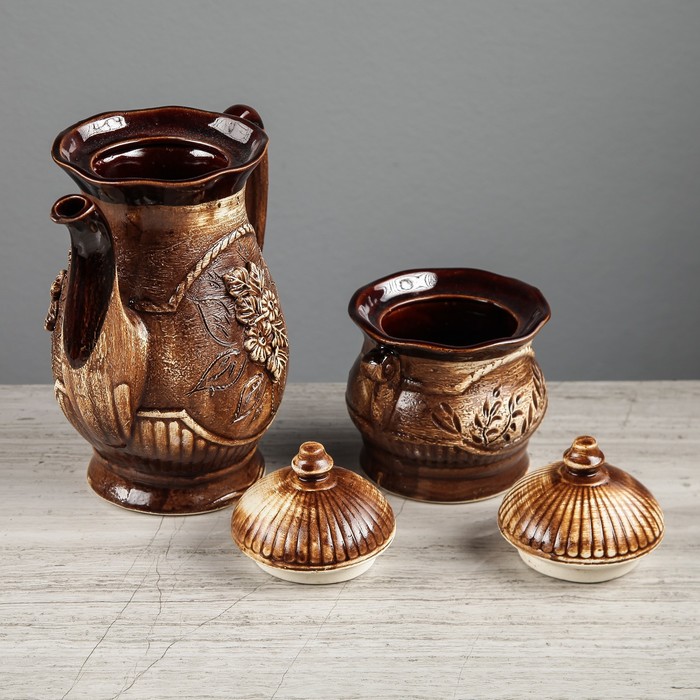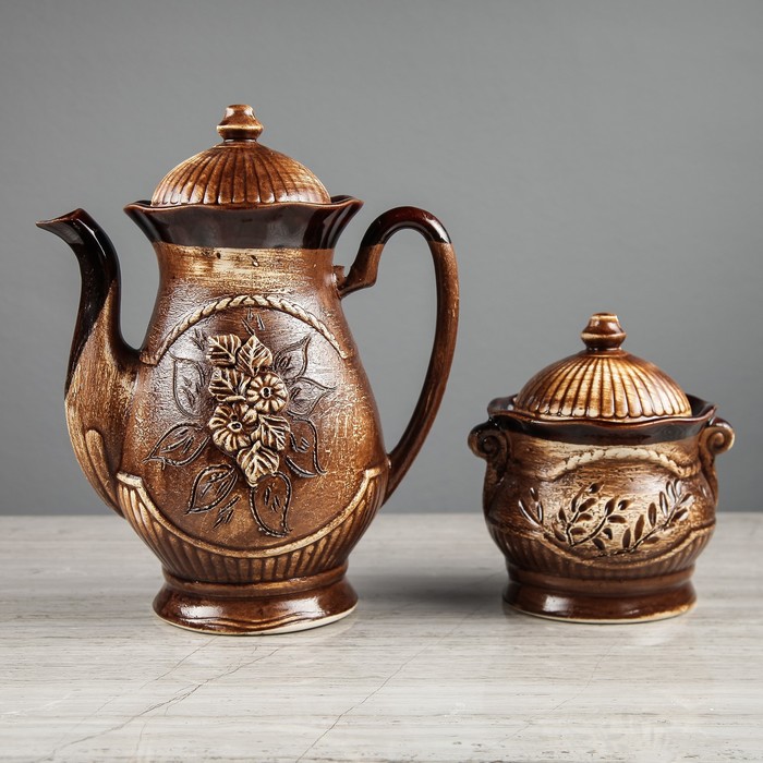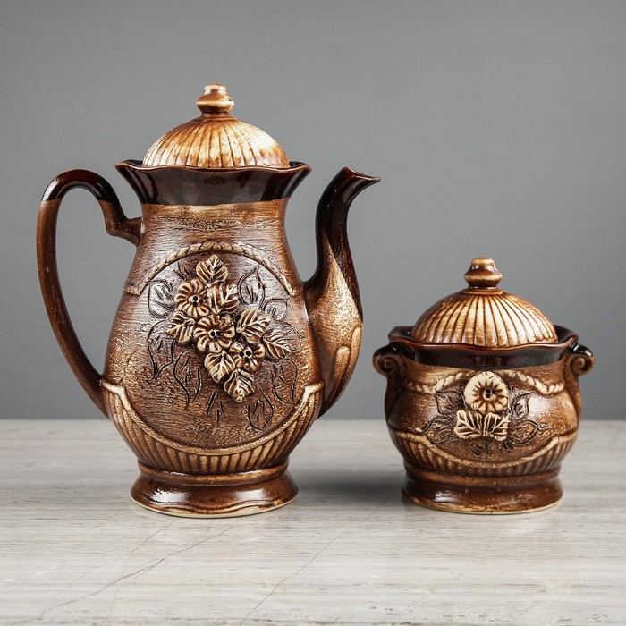 Все предметы набора изготовлены вручную из керамики. Этот экологически чистый материал легко переносит высокие и низкие температуры, устойчив к царапинам, потёртостям, не имеет запахов и примесей. Керамическая посуда хорошо держит тепло напитка, не влияя на его вкус.
