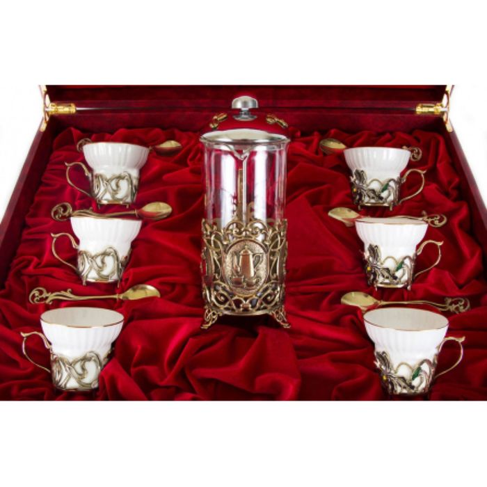 Чайный сервиз с френч-прессом «Ирисы» в шкатулке с накладкой «Истинная женщина»