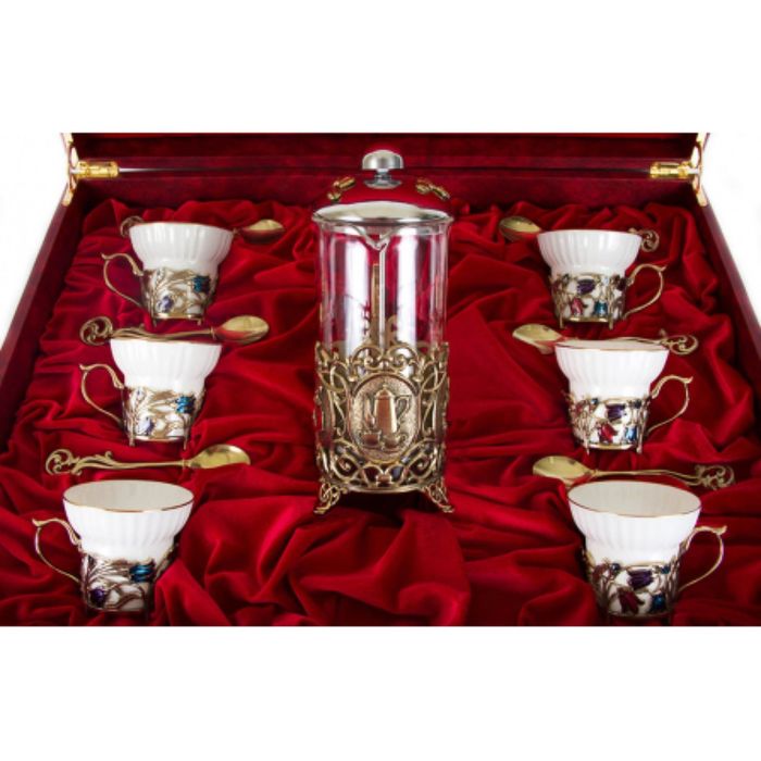 Чайный сервиз с френч-прессом «Колокольчики» в шкатулке с накладкой «Истинная женщина»