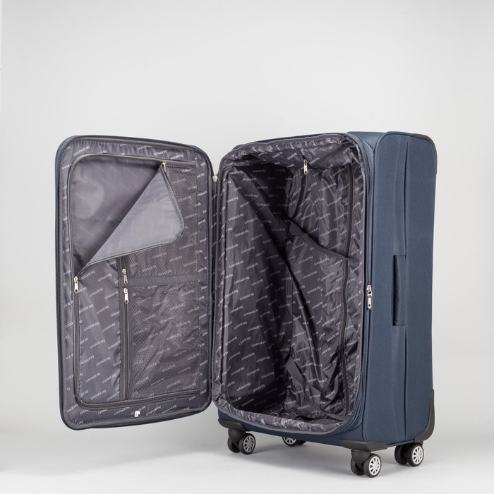 Маленькие, казалось бы, незначительные элементы зачастую завершают, дополняют образ, подчёркивают статус, стиль и вкус своего обладателя. Чемодан большой с расширением 28", отдел на молнии, 2 наружных кармана, 4 колеса, цвет синий — одна из подобных деталей. Это вещь достойного качества, которая может стать прекрасным подарком по любому поводу.