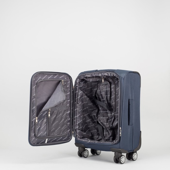 Чемодан малый "Классик" с расширением 20", отдел на молнии, 2 наружных кармана, 4 колеса, кодовый замок, цвет синий