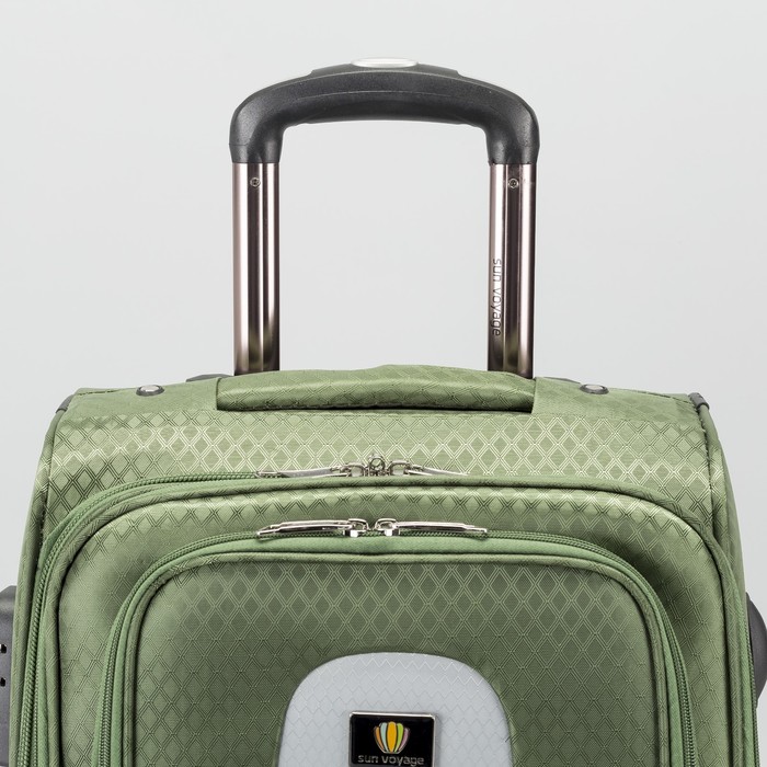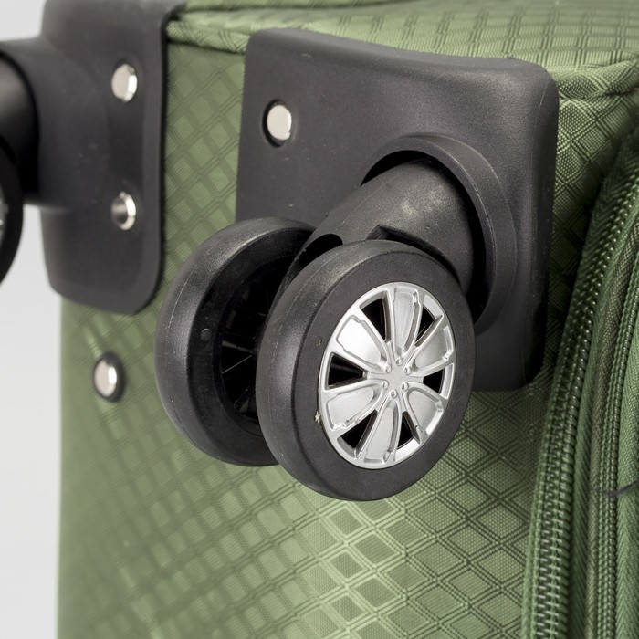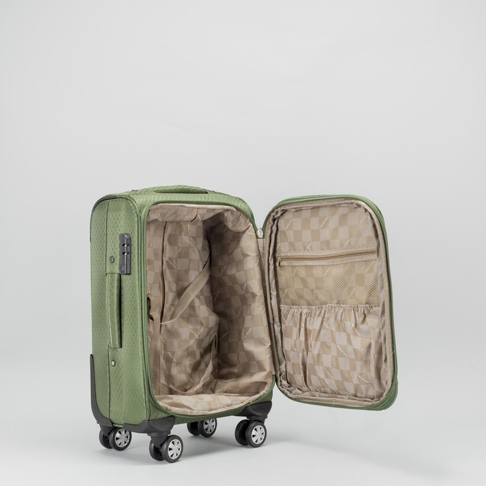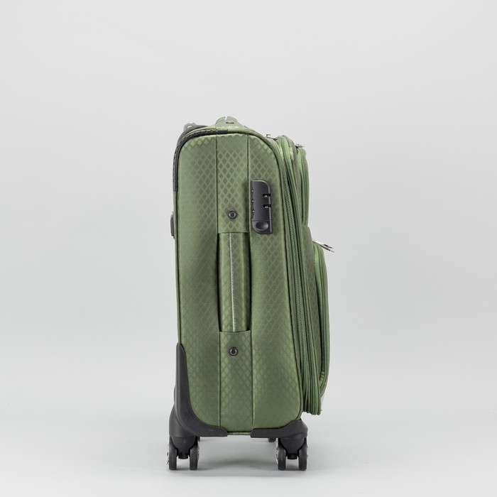 Чемодан малый на молнии 20", с расширением, 1 отдел, 2 наружных кармана, 4 колеса, кодовый замок, цвет зелёный