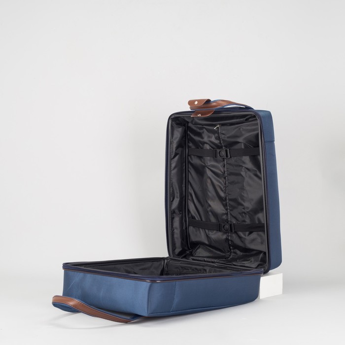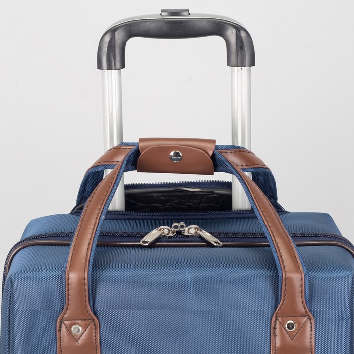 Чемодан с сумкой 20", отдел на молнии, 2 колеса, кодовый замок, цвет синий