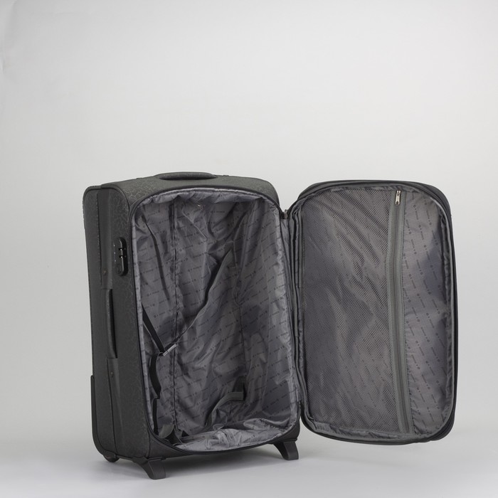 Чемодан средний 24", отдел на молнии, с расширением, 2 наружных кармана, кодовый замок, 2 колеса, цвет серый