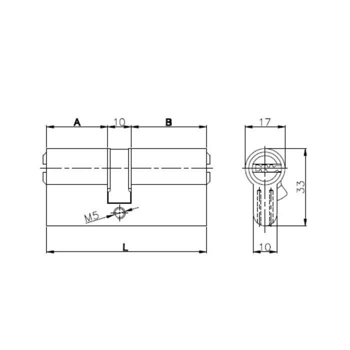 Цилиндровый механизм KALE 164 OBS SNE/68, 26х10х32 мм, 5 ключей, цвет латунь