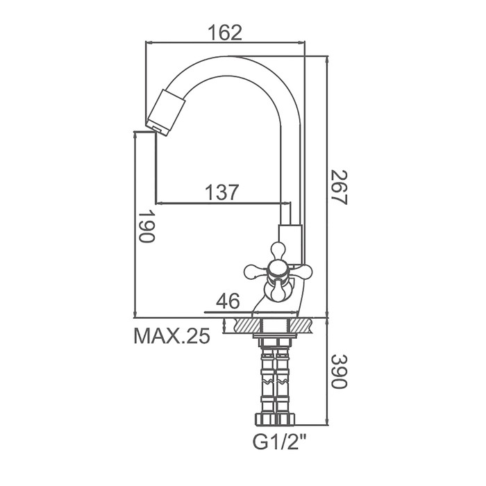 | Длина излива, мм | 162 |