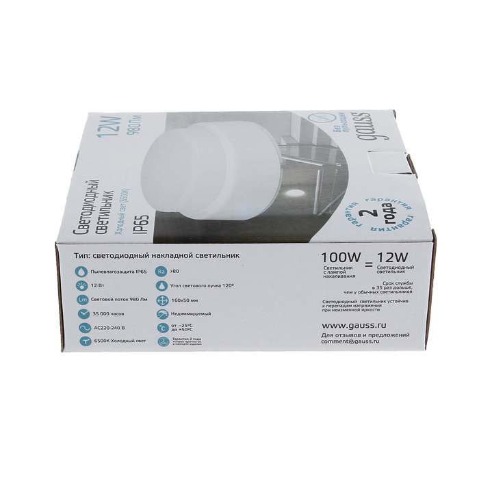 Cветильник cветодиодный Gauss, IP65, 12 Вт, 6500K, круглый
