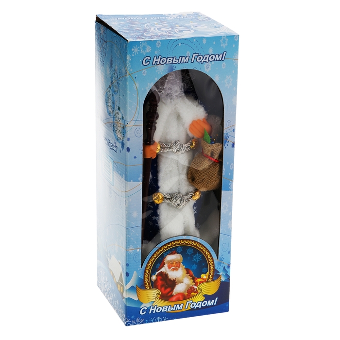Дед Мороз, в валенках и синей шубе, с подарками, русская мелодия на новогоднем столе станет оригинальным атрибутом, наполняющим помещение праздником. Украсьте свой Новый год добрыми улыбками.