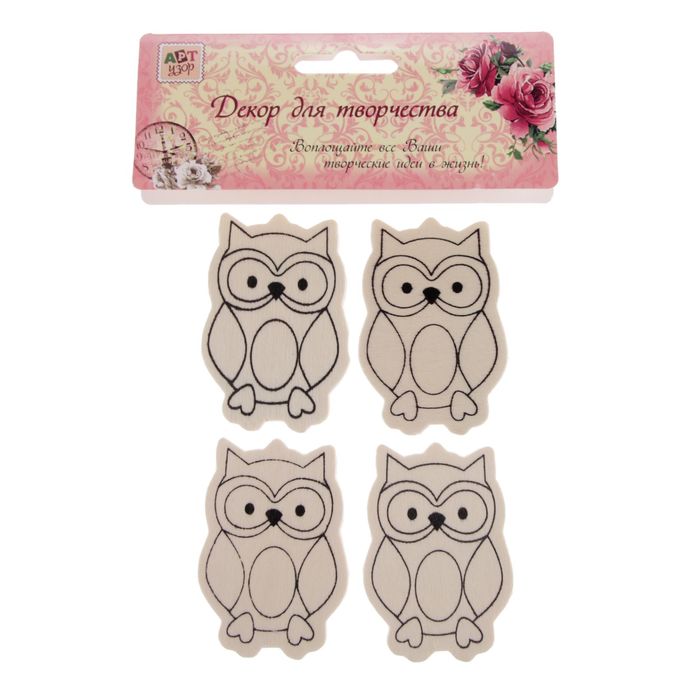 Декор для творчества дерево "Совушка" (набор 4 шт) 6,3х4,3 см