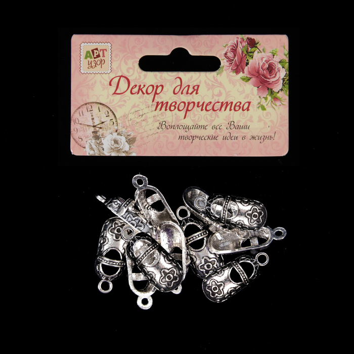 Декор для творчества металл "Сандалик" серебро 2х1 см