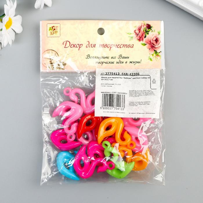 Декор для творчества пластик "Лебеди" цветные набор 15 шт 3х2,7 см