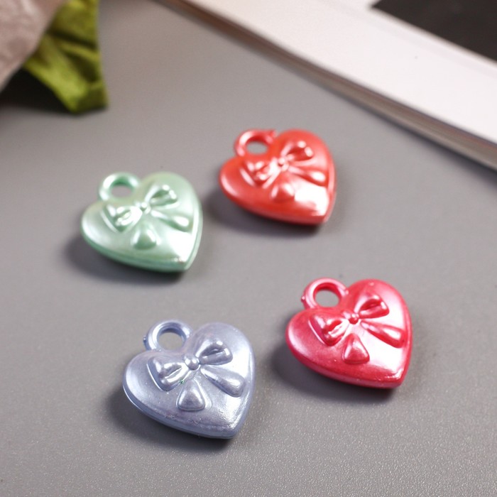 Декор для творчества пластик "Сердце с бантом цветной перламутр" 12 гр 1,5 см