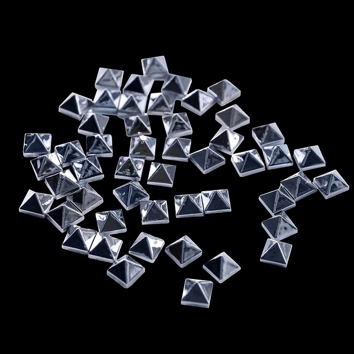 Декор для творчества пластик "Шипы квадрат" серебро набор 50 шт 1х1 см