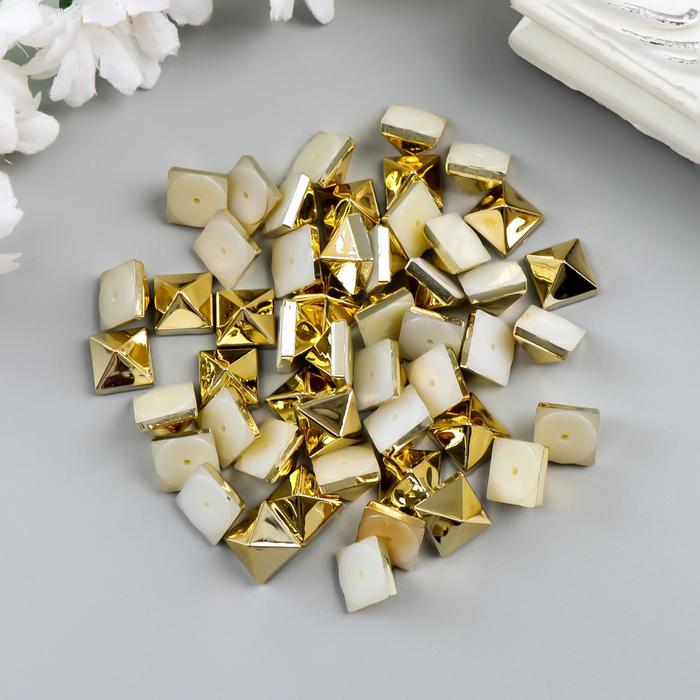 Декор для творчества пластик "Шипы квадрат" золото набор 50 шт 1х1 см