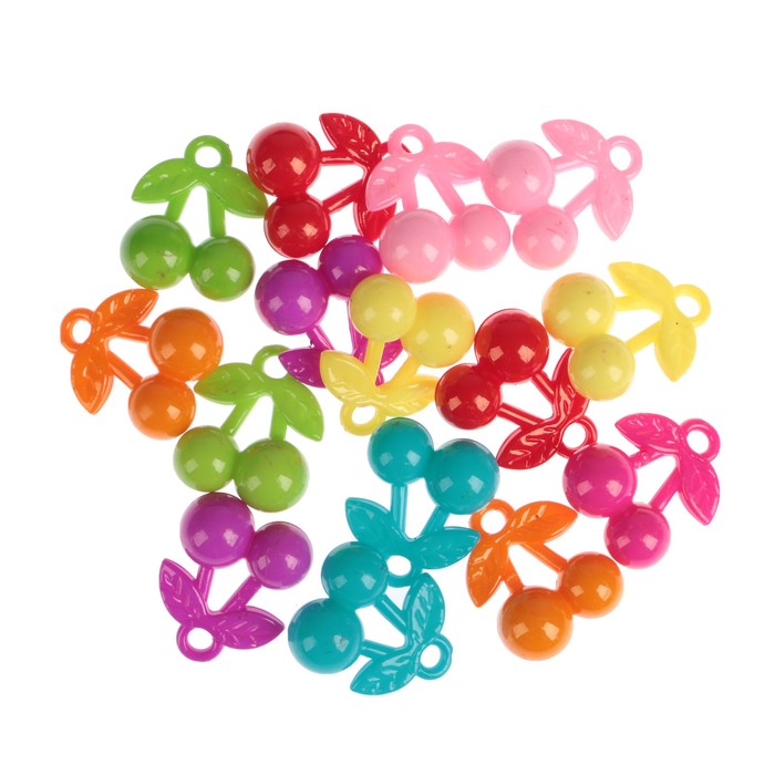 Декор для творчества пластик "Вишенки" цветной набор 15 шт 1,9х2,4 см