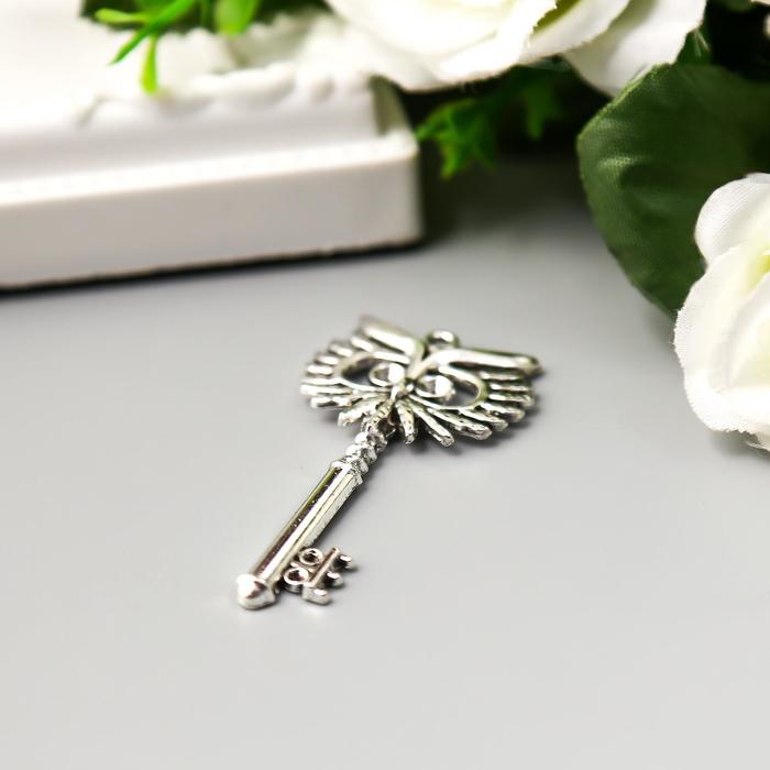 Декор металл для творчества "Ключ-филин" серебро (А35798) 5,4х2,7 см