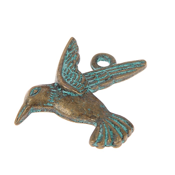 Декор металл для творчества "Колибри" (F36469) зелёная патина 2х2,2 см