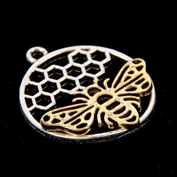 Декор металл для творчества "Пчела на сотах" (41043) серебро с золотом 2,7х2,3 см