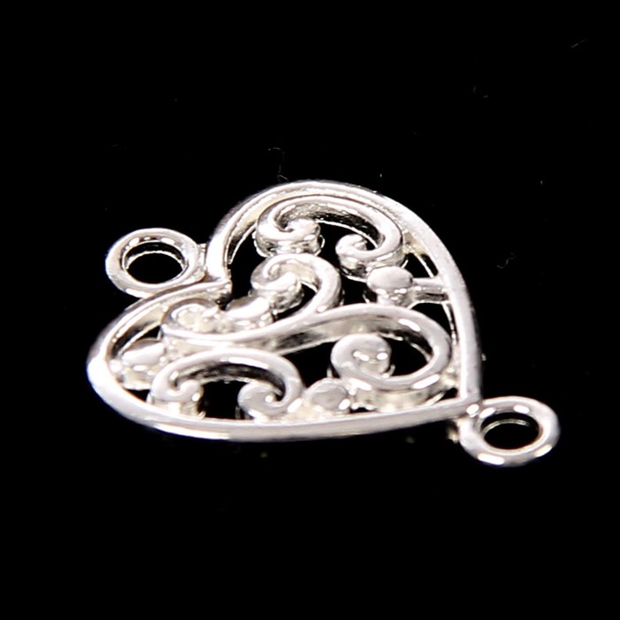 Декор металл для творчества "Сердце с узорами" (A60034) серебро 1,7х1,2 см