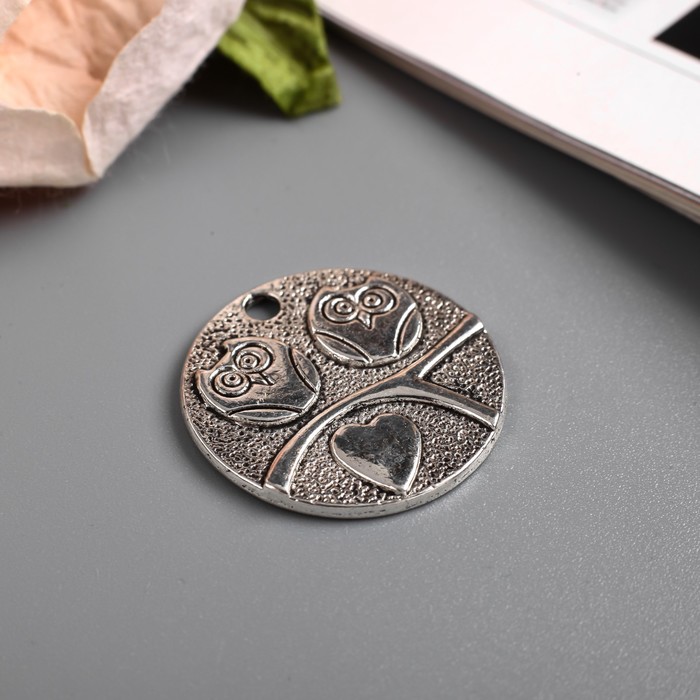 Декор металл для творчества "Совушки на ветке в круге" (A12931) 2,3х2,3 см