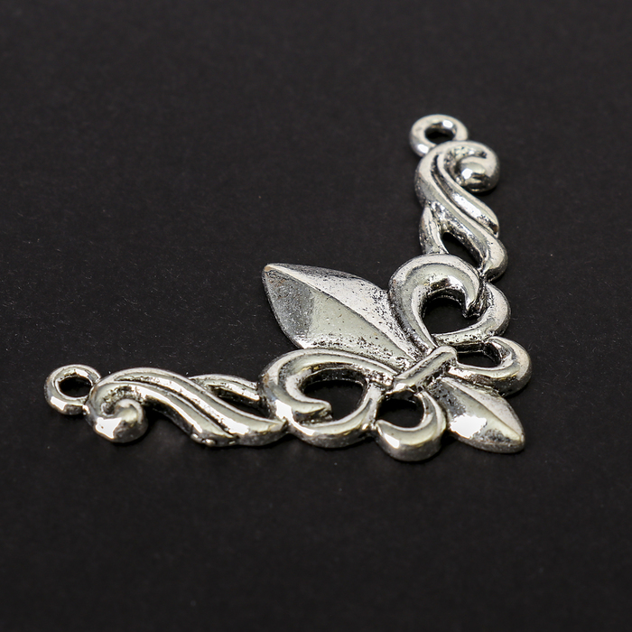 Декор металл для творчества "Уголок с геральдической лилией" серебро (В22802) 3,1х4,4 см