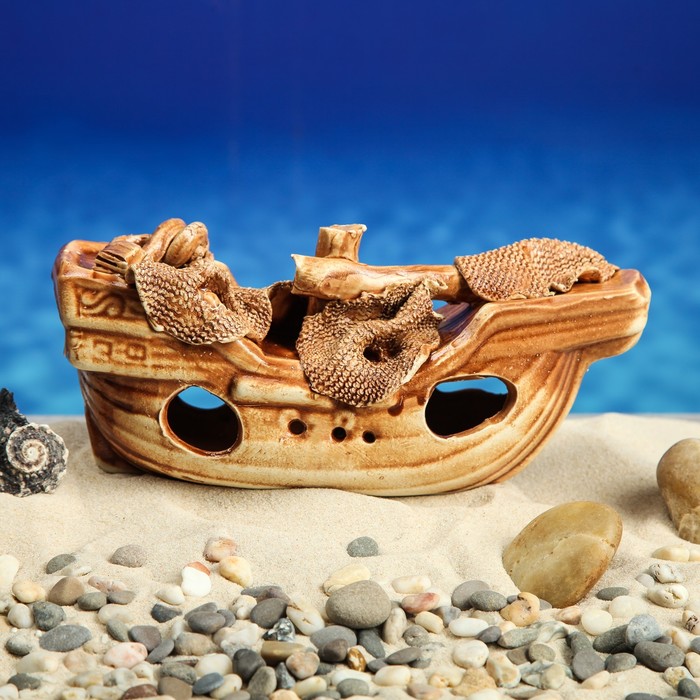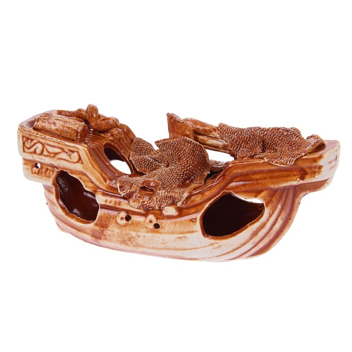 Декорации для аквариума "Корабль средний" коричневый
