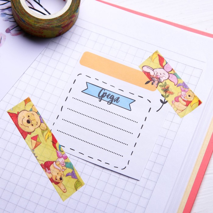 Декоративная клейкая лента бумажная "Лучшие друзья", Медвежонок Винни, 1,5 см х 10 м
