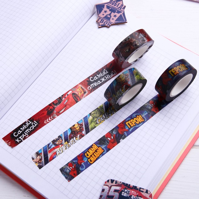 Декоративная клейкая лента бумажная "Вперед!", Команда Мстители, 1,5 см х 10 м