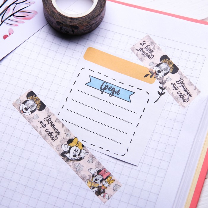 Декоративная клейкая лента бумажная "Я буду звездой!", Минни Маус, 1,5 см х 10 м
