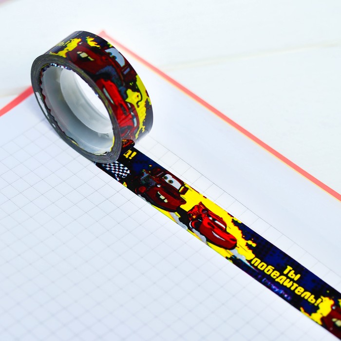 Декоративная клейкая лента пластиковая "Ты победитель", Тачки, 1,5 см х10 м