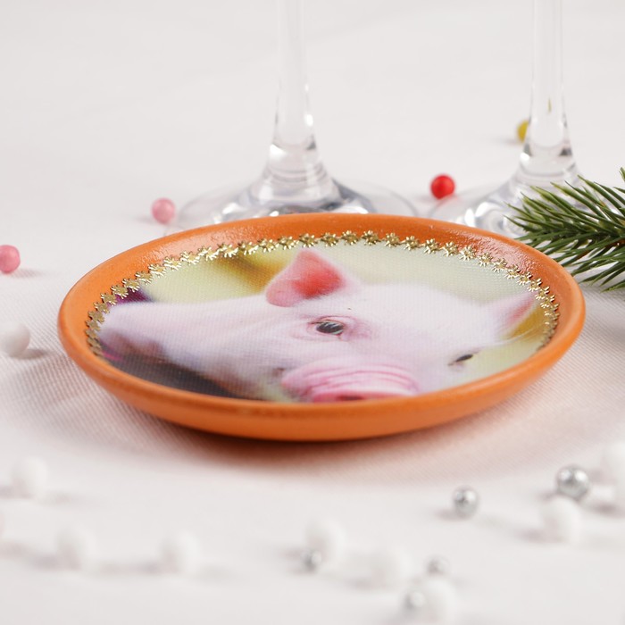 Декоративная тарелка «Поросёнок», на холсте, настенная, D=11,5 см