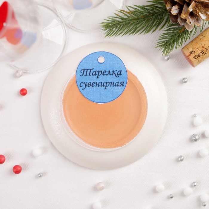 Декоративная тарелка «Поросёнок в сене», на холсте, настенная, D=11,5 см