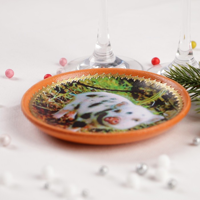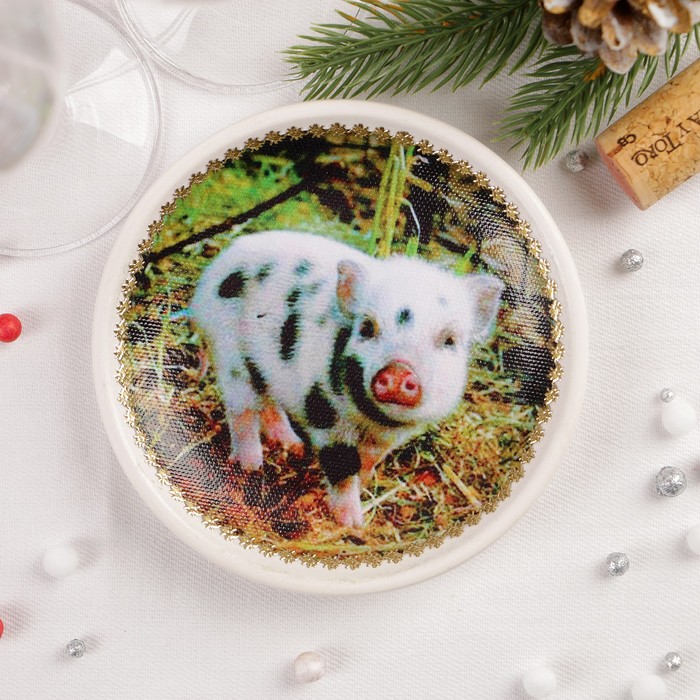 Декоративная тарелка «Свинка», на холсте, настенная, D=11,5 см