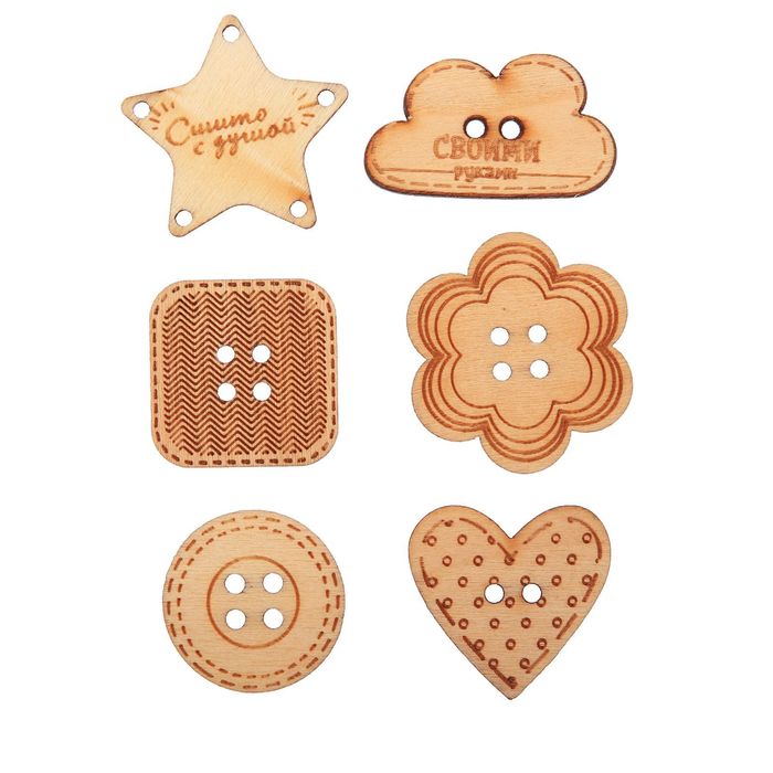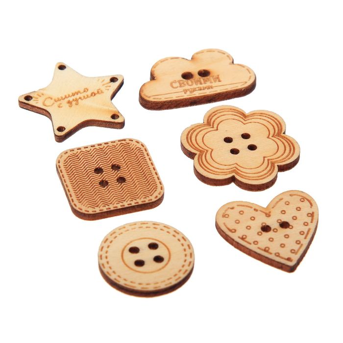 Данные декоративные нашивки — это небольшие деревянные фигурки, которые пригодятся при оформлении изделий ручной работы: игрушек, картин, альбомов, фоторамок, панно, коллажей и других. Разрисуйте их акриловыми красками или используйте в натуральном виде. Элементы можно пришить нитками или прикрепить с помощью лент.