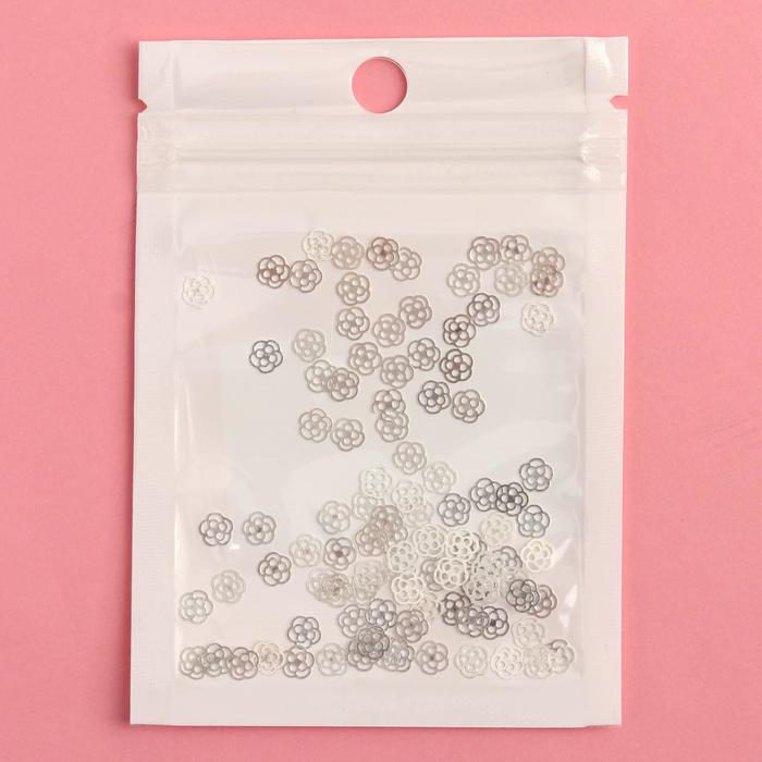 Декоративный элемент для ногтей «Цветок», 0,5x0,5см, 100шт, цвет серебристый