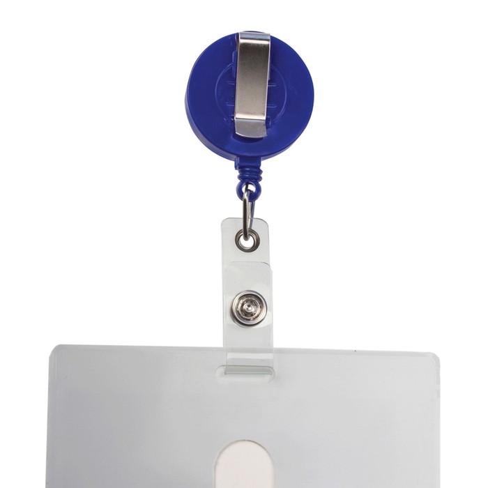 Держатель-рулетка для бейджей 70см, петелька, клип, синий, в блистере
